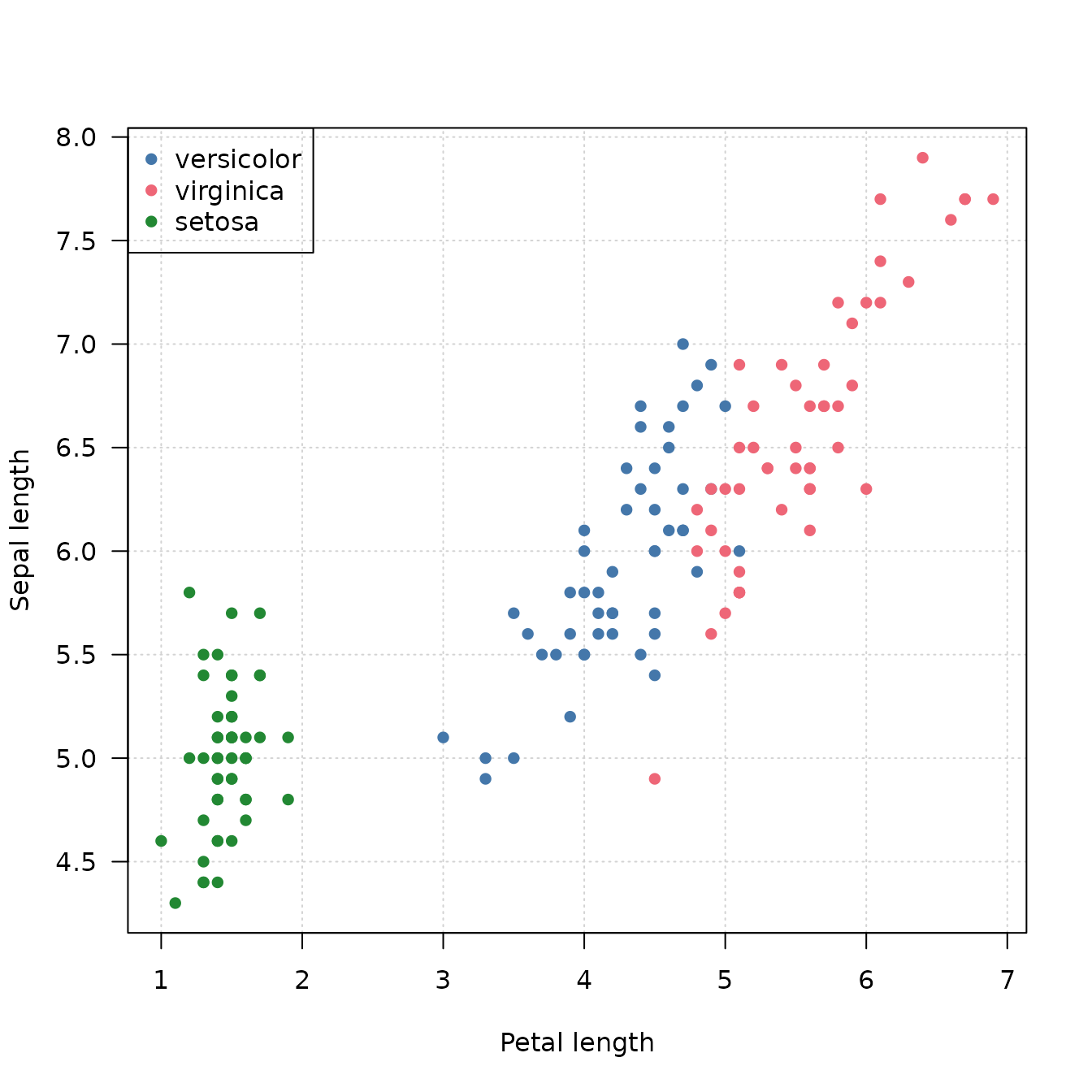 xlab = "Petal length",