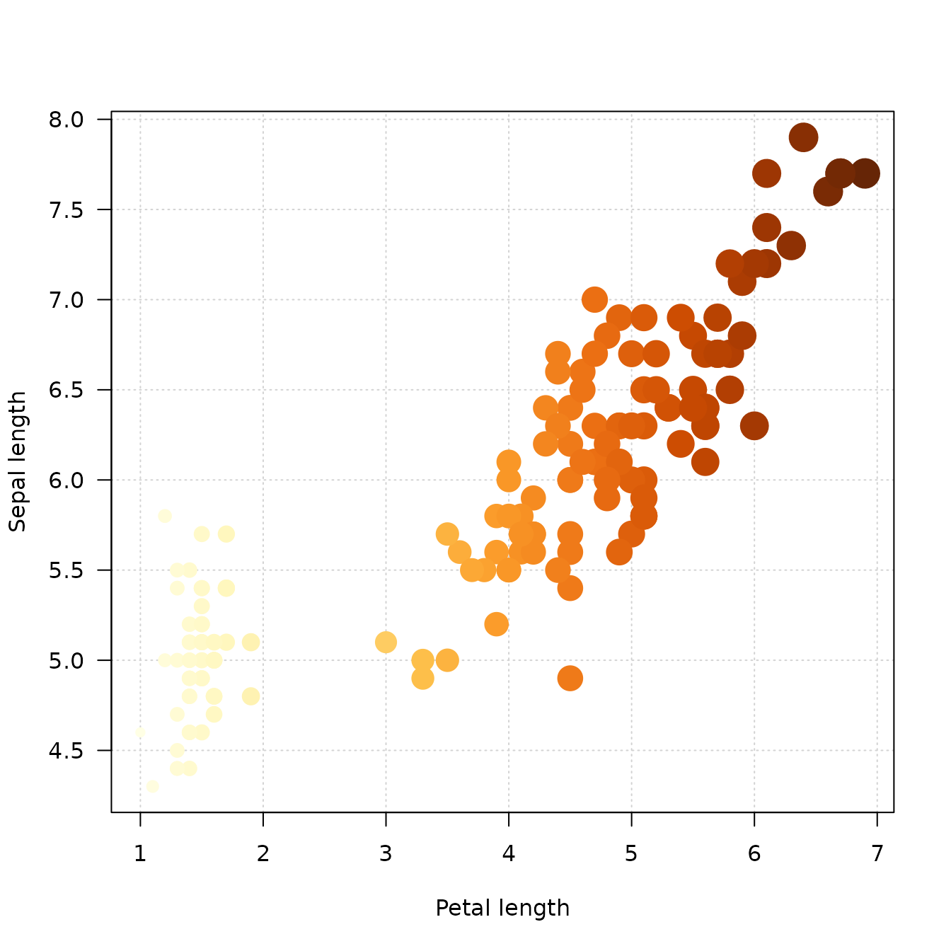 cex = pal_size(iris$Petal.Length),