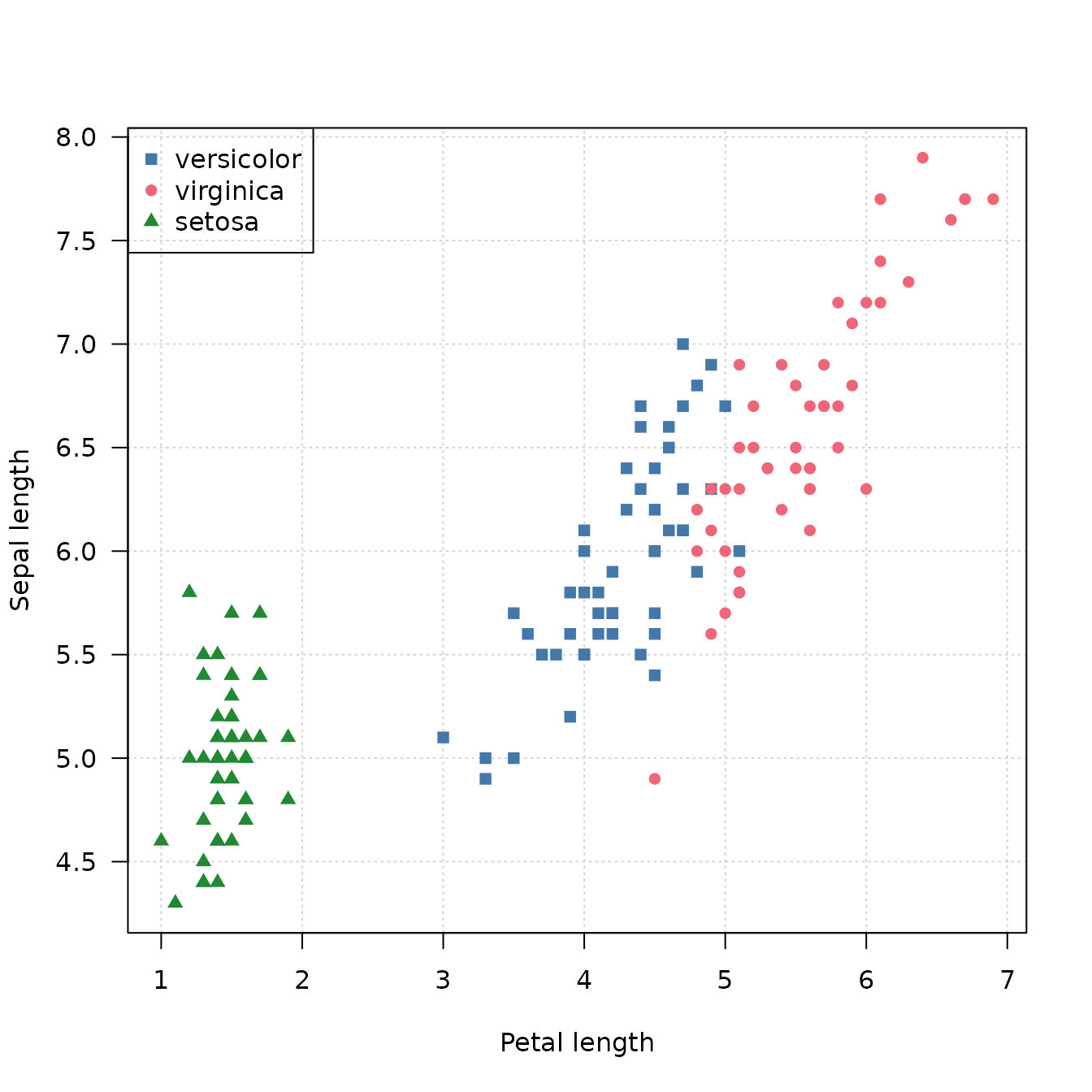 symbols <- c(versicolor = 15, virginica = 16, setosa = 17)